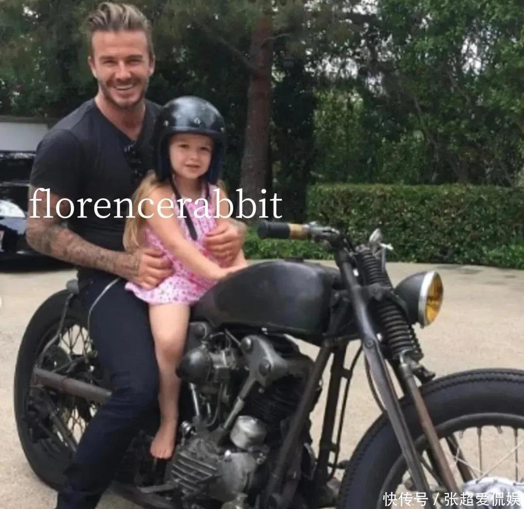 她晒出了哈珀穿戴粉色芭蕾服的像片,还有大卫抱着小七坐在摩托车上的萌照。