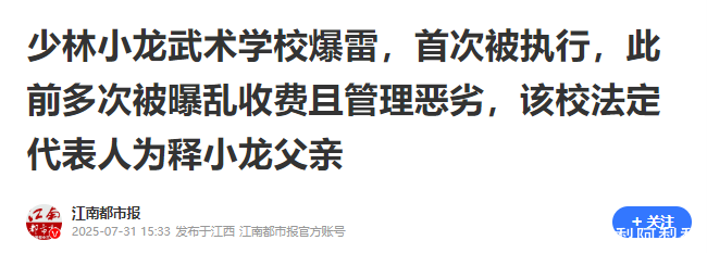 凭证2025年7月31日江南齐市报的发文,童年男神释小龙父亲创办的登封市少林小龙技击学校新增一则被实际东说念主音书。