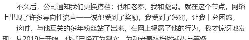 不久后公司就奉告我方更换搭档,何九华尽然和秦霄贤搭档了,而我方则和郭宵汉搭档。而此时网上也出现了不少对我方不利的公论导向。不外就在这个节骨眼,何九华的大粉脱粉回踩,曝光了何九华的一系列暧昧操作,蓝本从2019年开动,何九华就开动为“裂穴”作念准备。