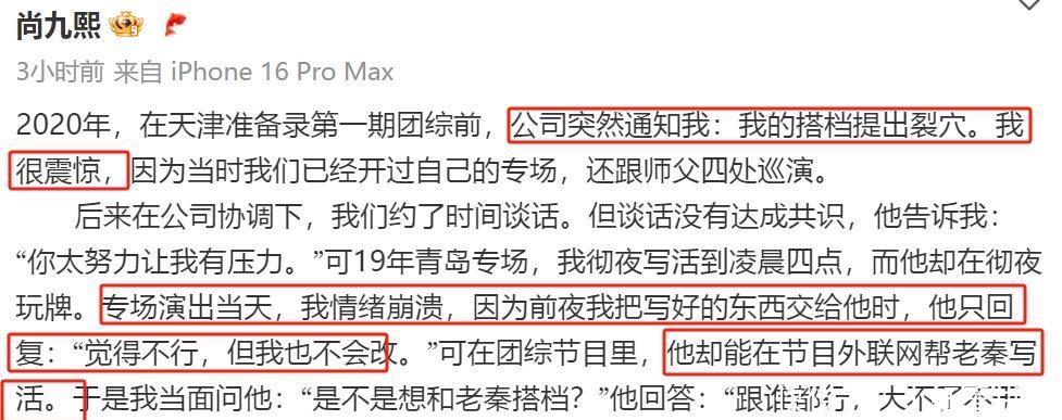 何九华头陀九熙本是一双好搭档,两东说念主2012年就沿途谐和,但却在20年时一刹官宣“裂穴”,让东说念主愁然。两东说念主分开后,德云社为何九华分派了新搭档秦霄贤,尚九熙则和郭宵汉搭档。两东说念主本可一别两宽体面分开,而时隔五年,两东说念主恩仇再次被抬上桌面体育游戏app平台,尚九熙也不再哑忍,发文怒撕何九华“背刺”,曝光裂穴始末。