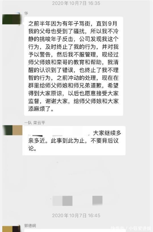 何九华也因为此事被德云社里面教化,被郭德纲计帐出大群。尚九熙爆料,其后师父出于仁义让他重新进群,并对他进行教化,下不为例。